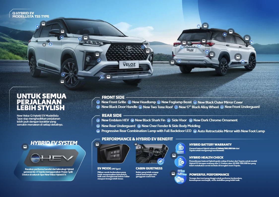 All New Veloz Hybrid EV merupakan mobil multifungsi namun dengan tampilan yang mewah dan berbagai fitur yang memberikan kenyamanan berkendara, mobil yang satu ini sangatlah cocok.