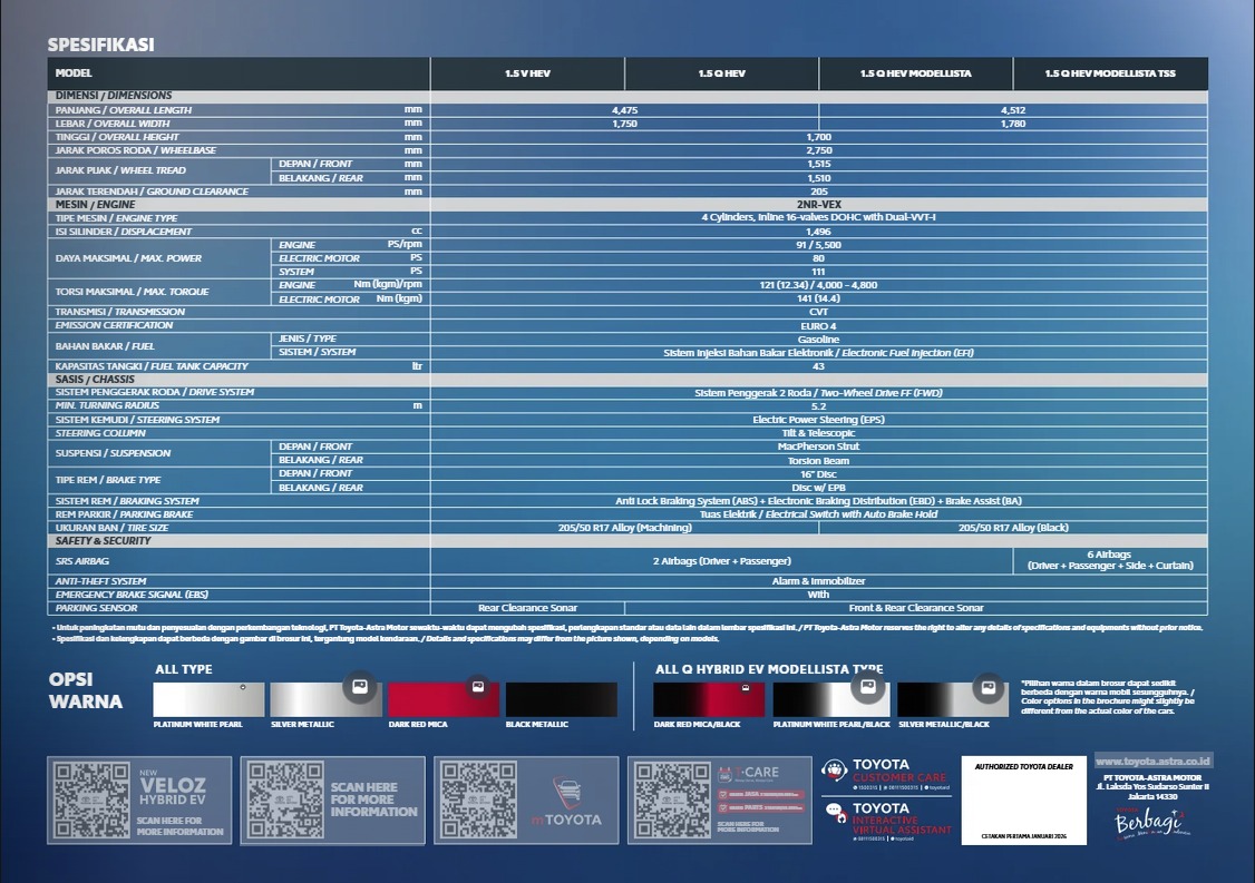 | 1.5 M/T (Premium Color) | IDR 295.400.000 |